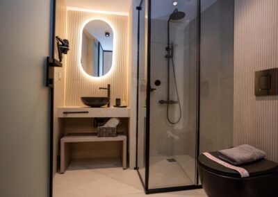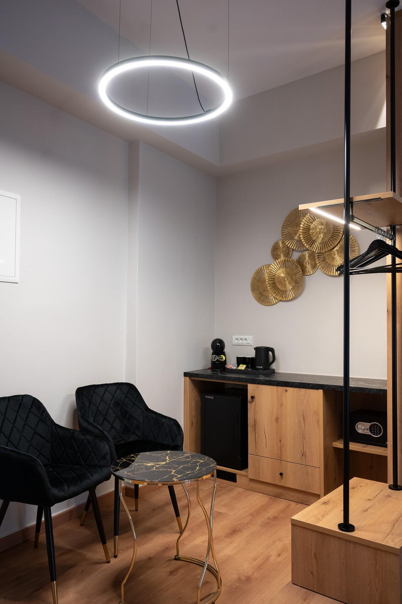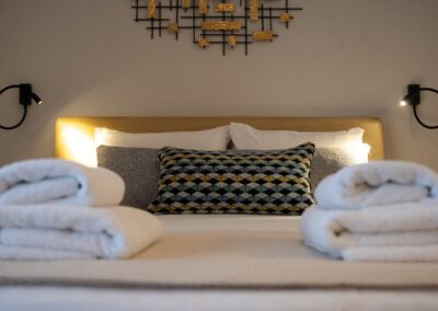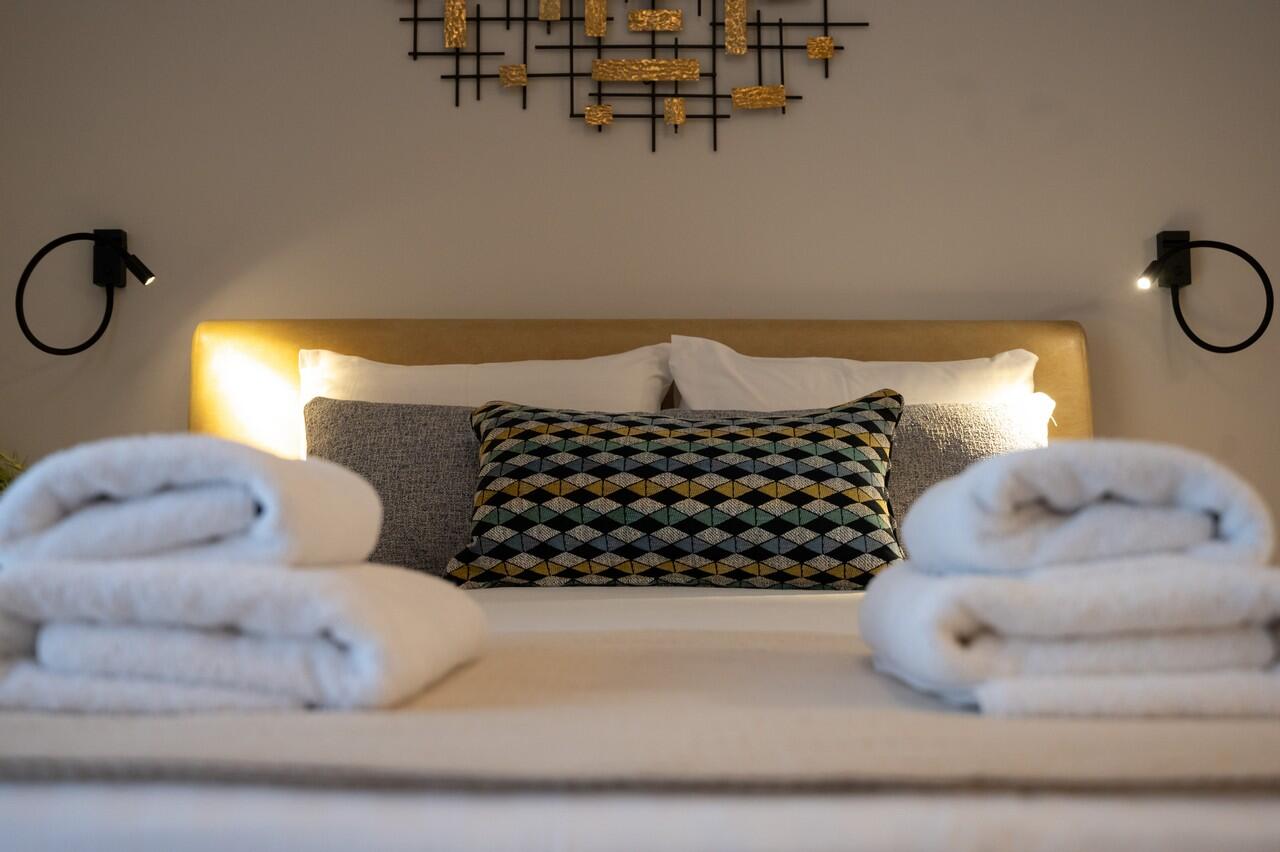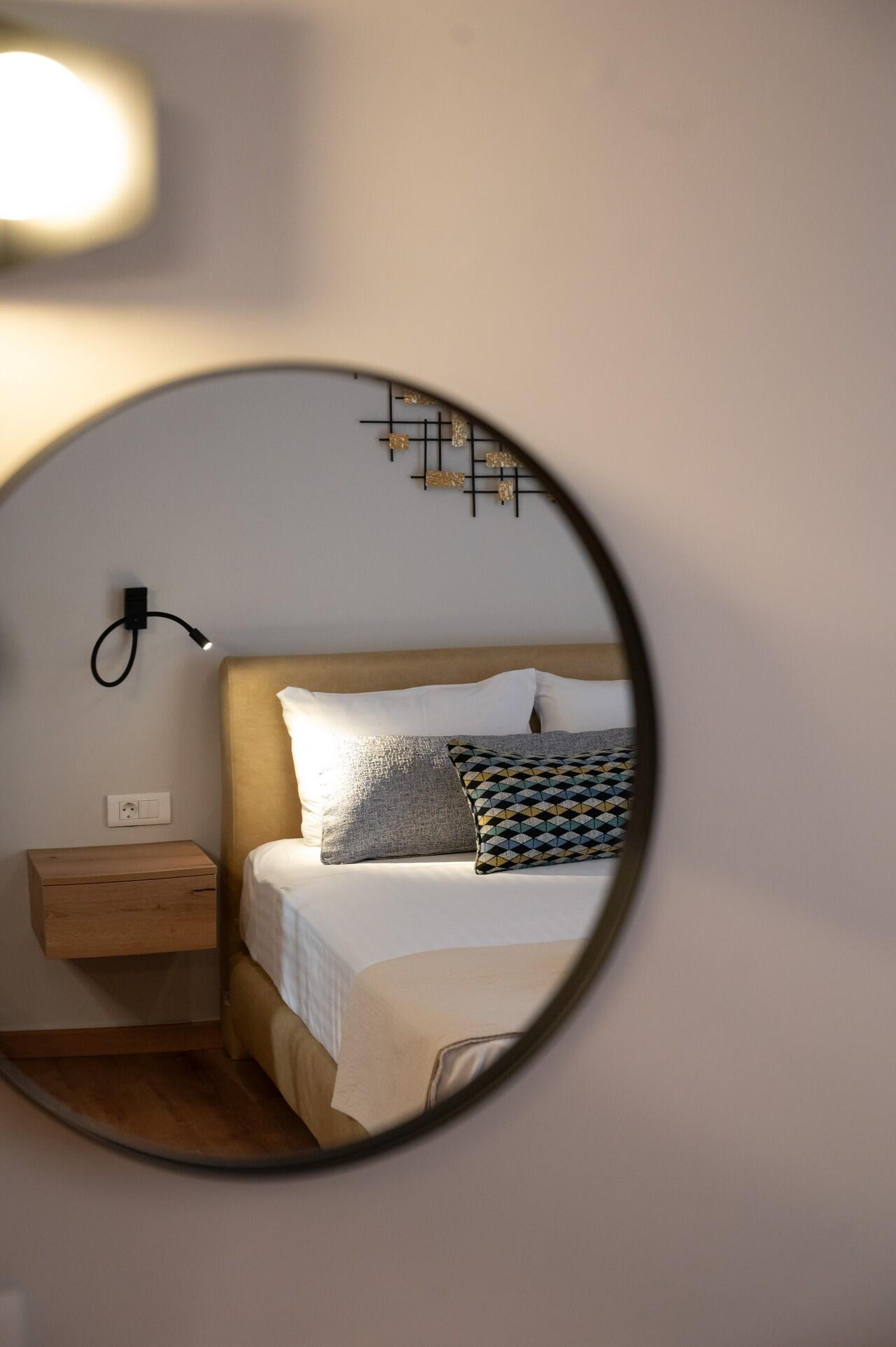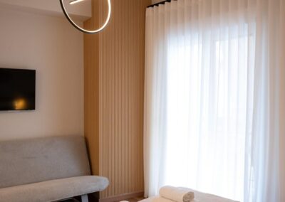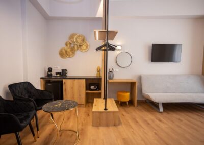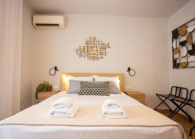 Superior Δωμάτιο 1 Διαθέτει: 1 πολύ μεγάλο διπλό κρεβάτι & 1 καναπέ κρεβάτι Μπορεί να φιλοξενήσει εως 3 ενήλικες ή 2 ενήλικες και 2 παιδιά 35 Τ.Μ. Κράτηση